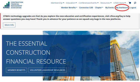 - How do I navigate the platform? When you log in, you can reach all areas of your account straight from your Customer dashboard, including membership, education, certification, CFMA’s store, and more! Once you log in, click on “My Dashboard” in the upper right corner to be brought to your Membership dashboard.